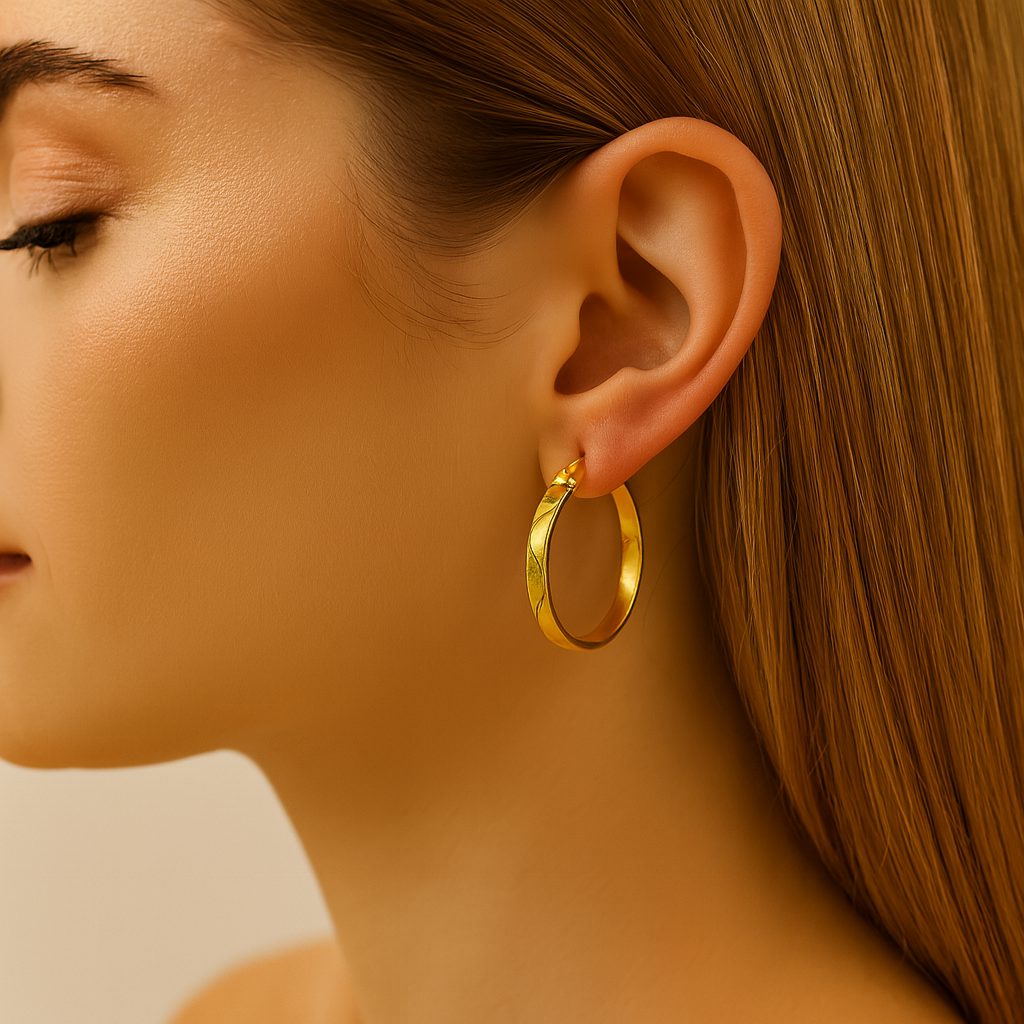Descoperă rafinamentul pur cu acești cercei rotunzi din otel inoxidabil placati cu  aur. Sistemul de închidere tip balama oferă siguranță și confort, transformându-i în alegerea ideală pentru purtarea zilnică sau evenimente speciale. Designul lor versatil completează perfect atât ținutele casual, cât și cele elegante.