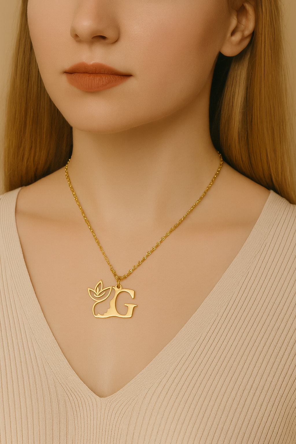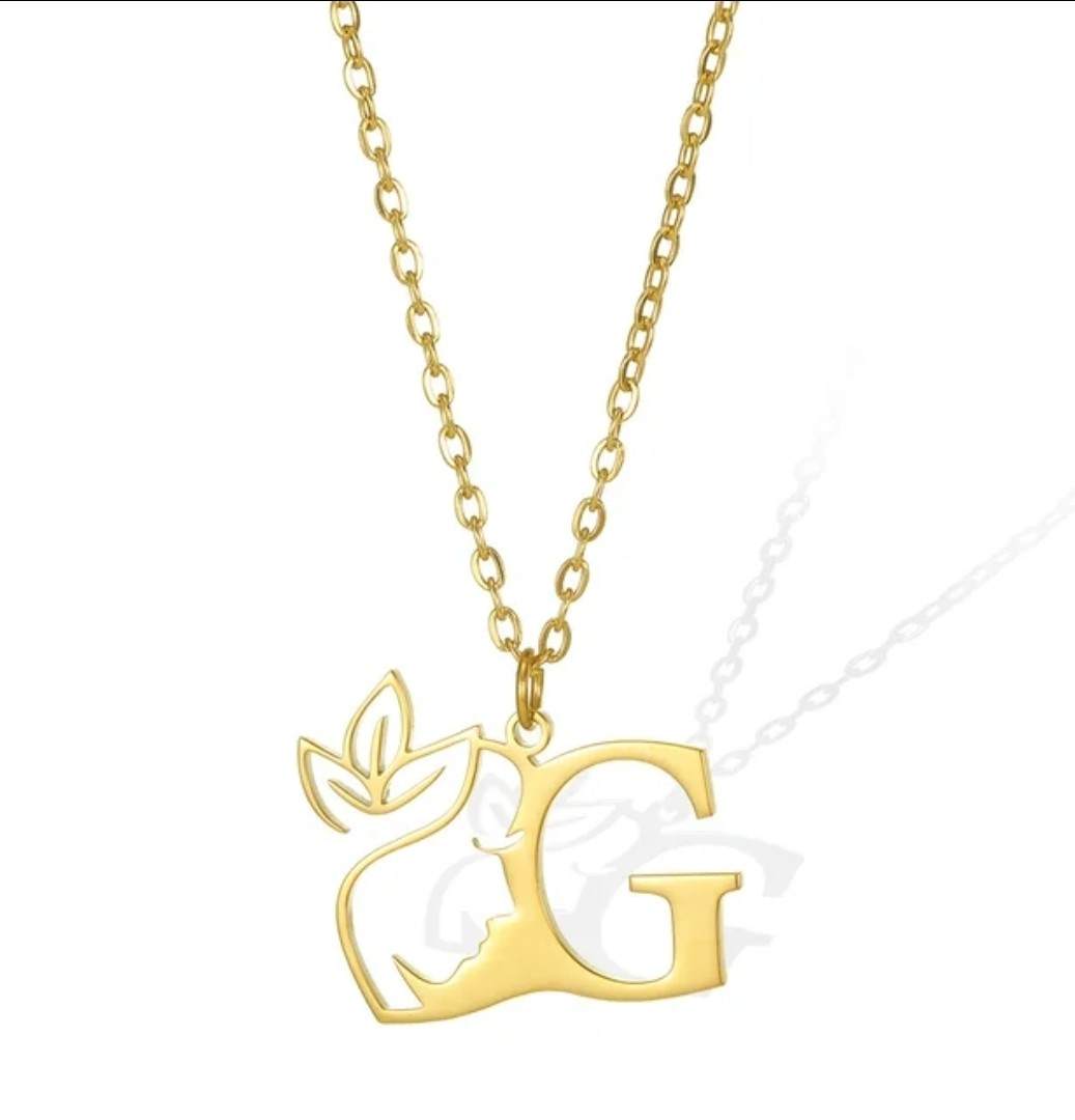 Lănțișor elegant din oțel inoxidabil placat cu aur de 18K, cu pandantiv în formă de inițială decorată cu siluetă feminină și detalii botanice. Rezistent la uzură, strălucire de durată și design modern. Un accesoriu personalizat, ideal pentru cadouri sau pentru a completa o ținută rafinată.