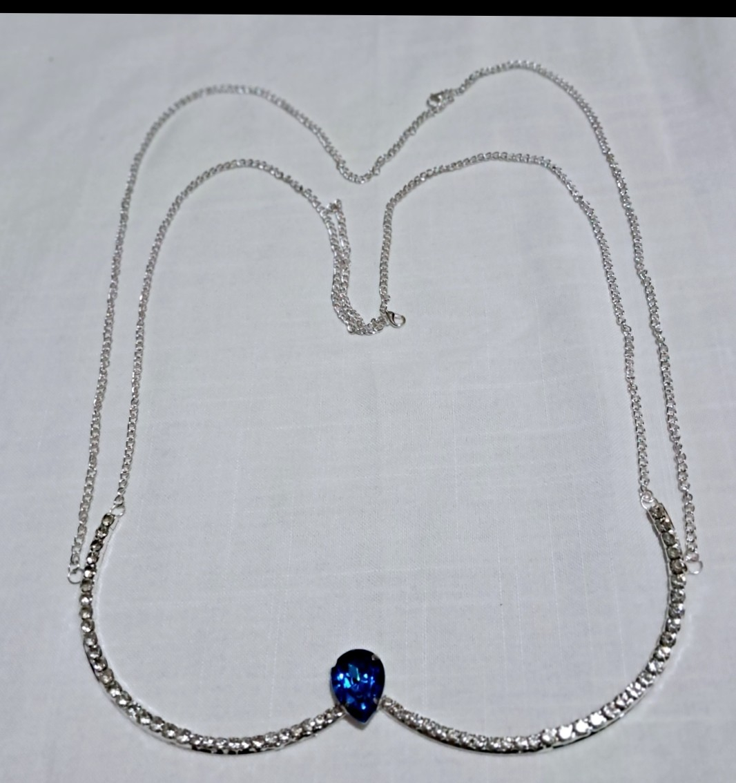 Lant argintiu pentru decolteu , cu piatra centrala albastra in forma de inima, ajustabil ,marime universala, perfect pentru tinutele sexy de club potrivit pentru femei sexy si puternice.